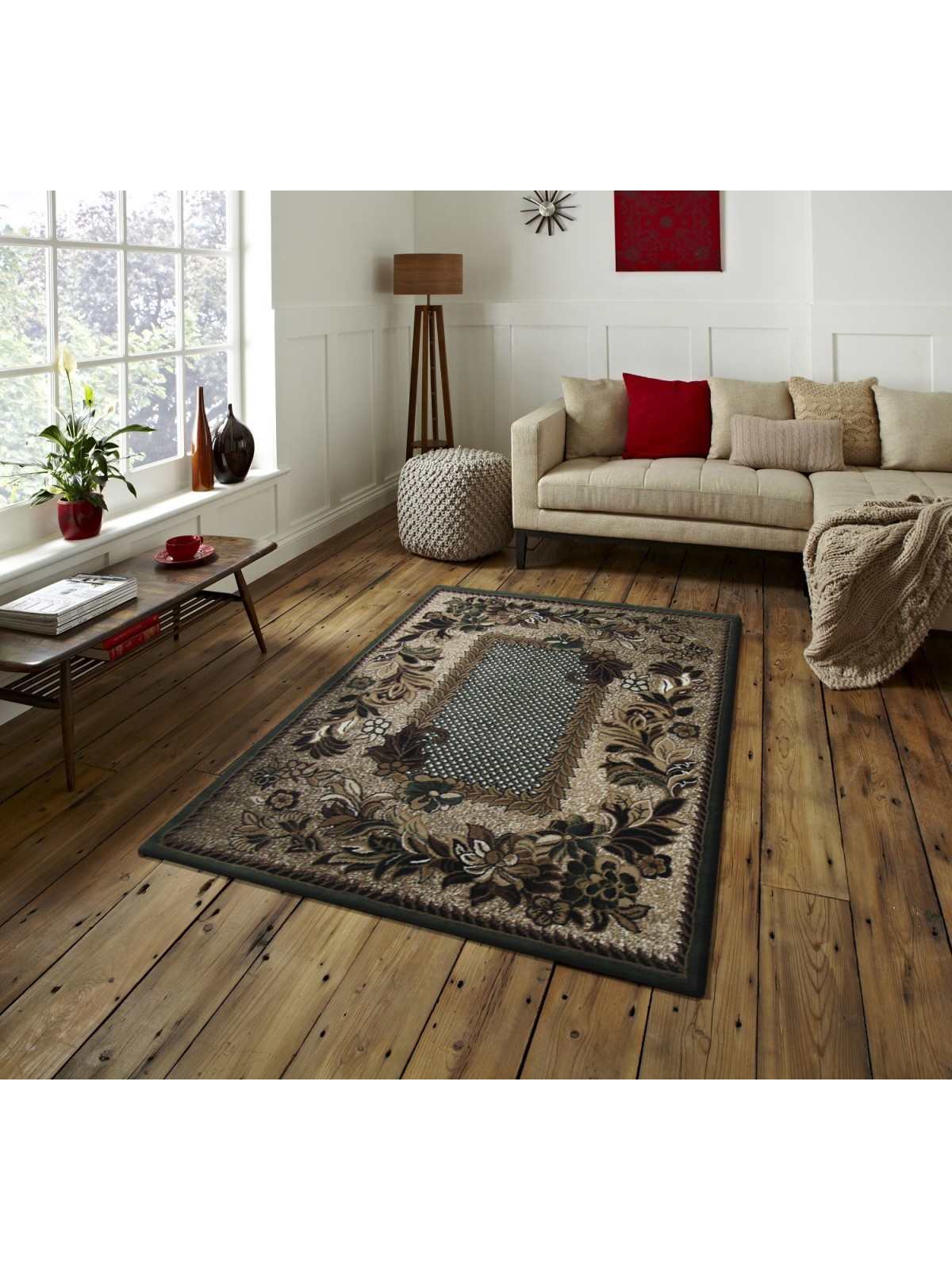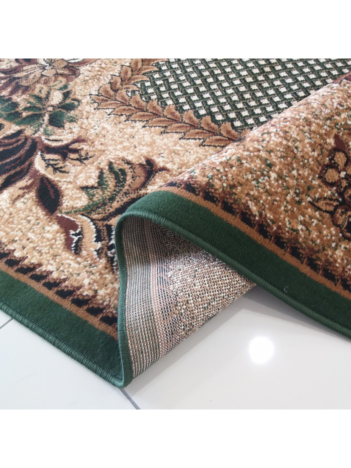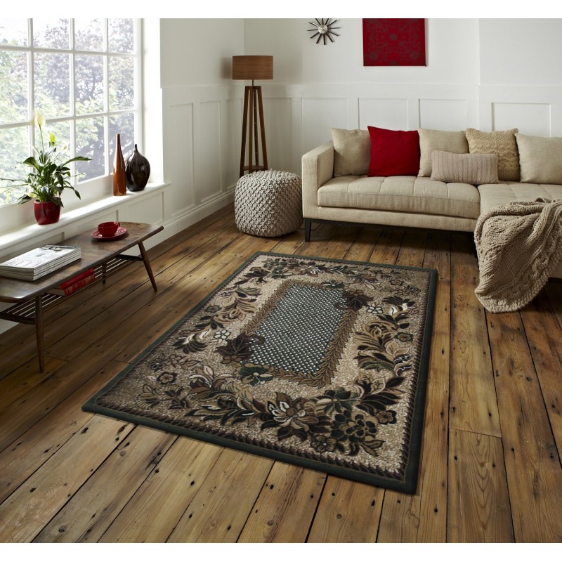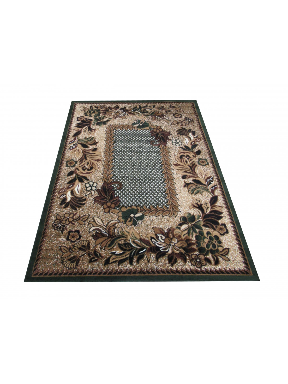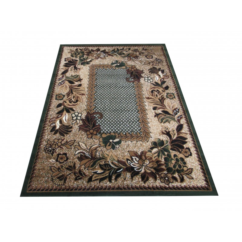 Zielono- beżowy dywan, z kolekcji Alfa, z klasycznym wzorem w kwiaty, to doskonały wybór jeśli szukasz dywanu wytrzymałego i przystępnego cenowo!