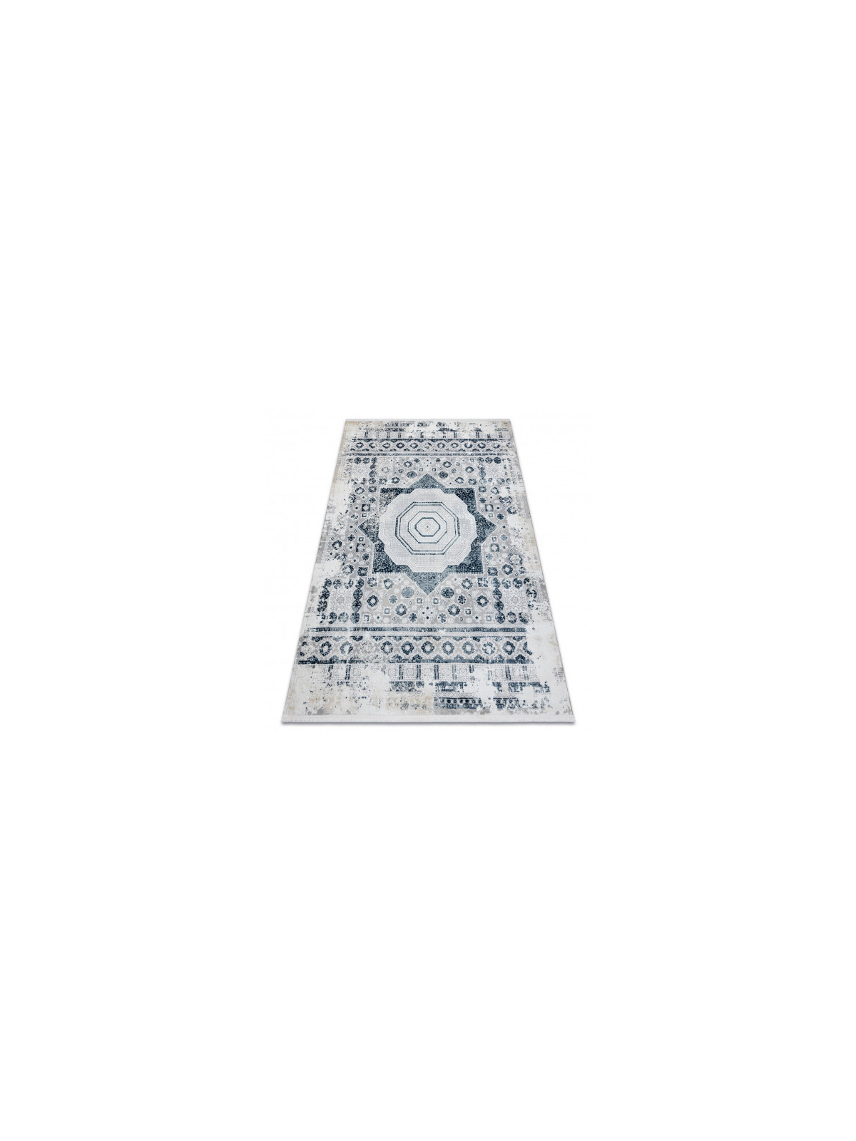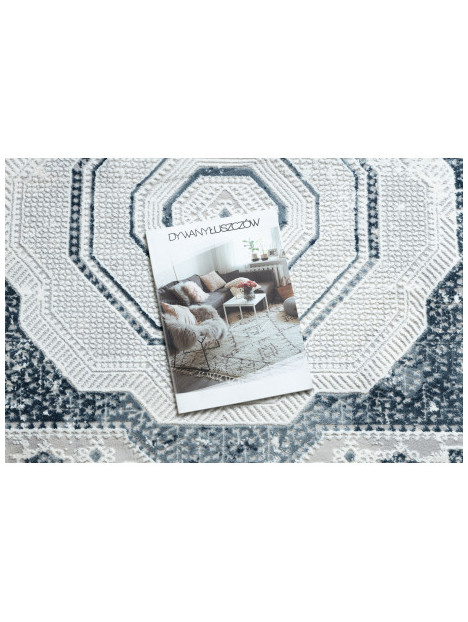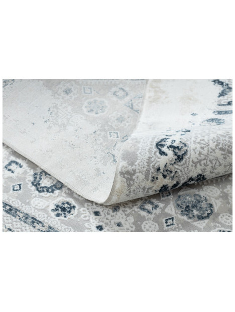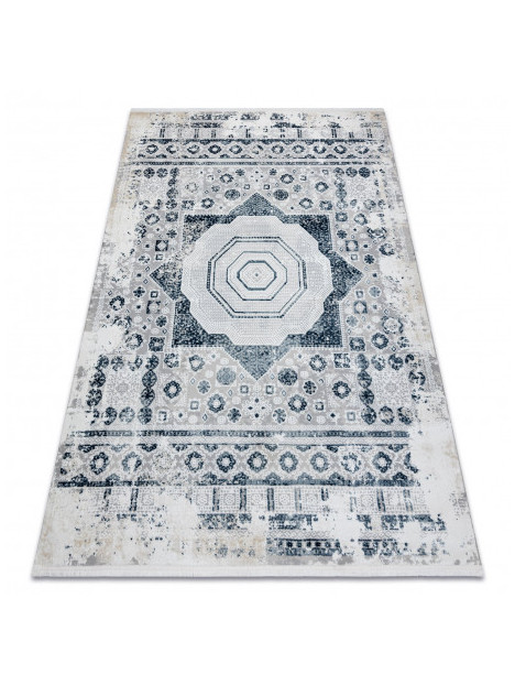 Dywan DUKE 51542 krem / niebieski - Rozeta vintage, strukturalny, bardzo miękki, frędzle