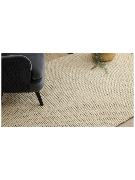 Dywan wełniany TAHAR 99004B krem - RĘCZNIE TKANY pętęlkowy, jednolity