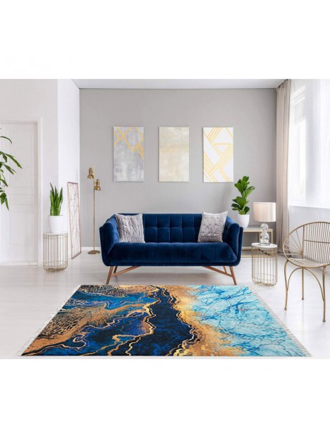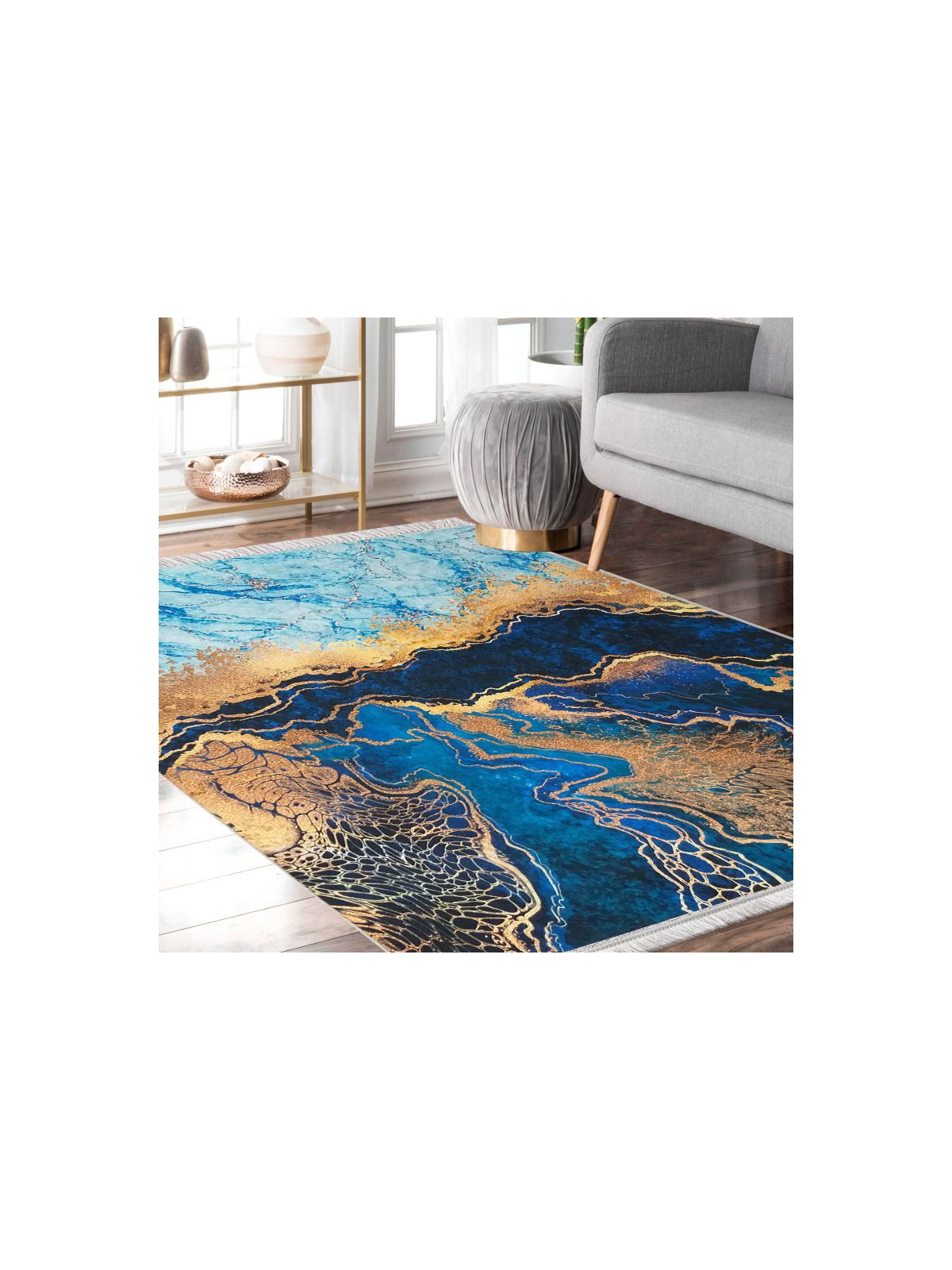 ❤️ Dywan antypoślizgowy w kolorze niebiesko- złotym doskonale sprawdzi się jako dywan kuchenny, dywan do przedpokoju, łazienki a nawet salonu.