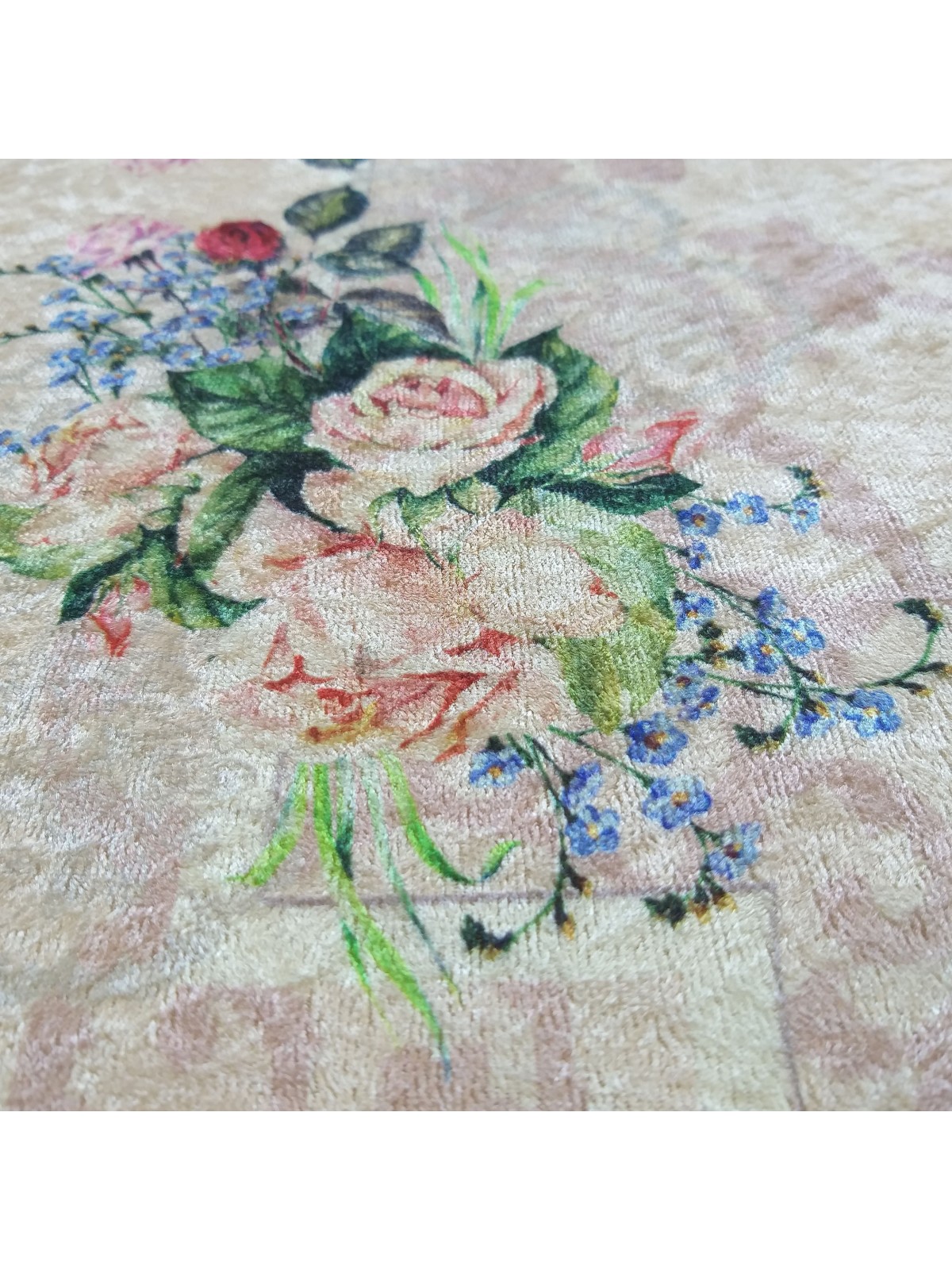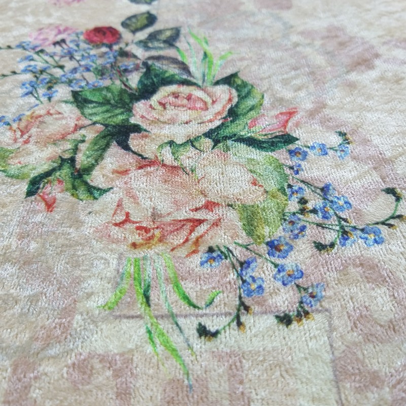 ❤️ Dywan antypoślizgowy, przyozdobiony tradycyjnym kwiatowym wzorem na pastelowym różowym tle, doskonale sprawdzi się jako dywan kuchenny, dywan do przedpokoju, łazienki a nawet salonu.