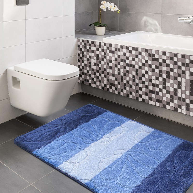 Niebieskie dywaniki łazienkowe z kolekcji Montana to doskonały wybór jeśli szukasz antypoślizgowych dywaników do łazienki z możliwością prania w pralce!